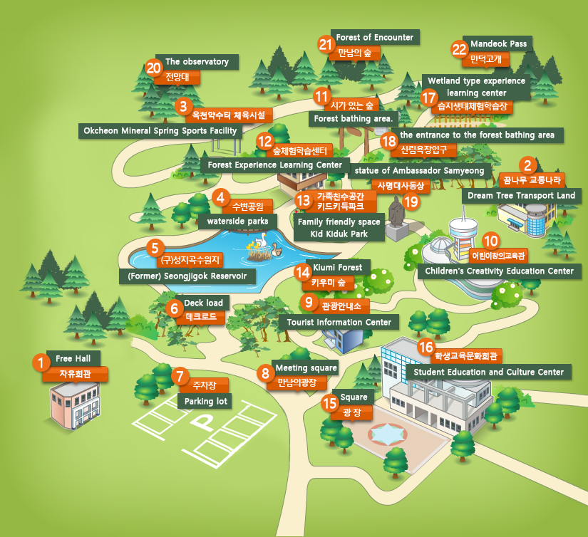 산림욕장입구 · 약 5만여 그루의 수목이 울창하게 우거져 있어 숲속에서 상쾌한 기운을 느낄 수