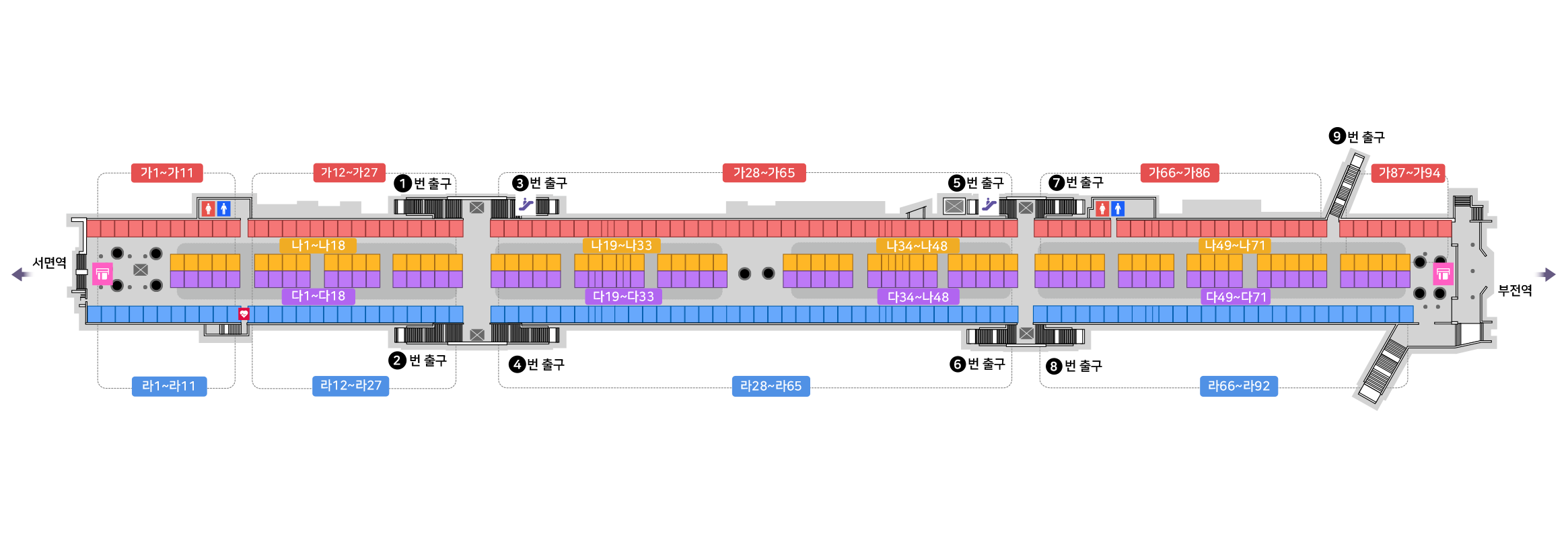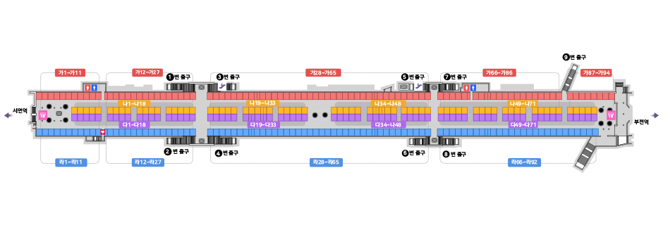 부산진구 중앙대로 지하737(부전동) 지하철 부전역~서면역
