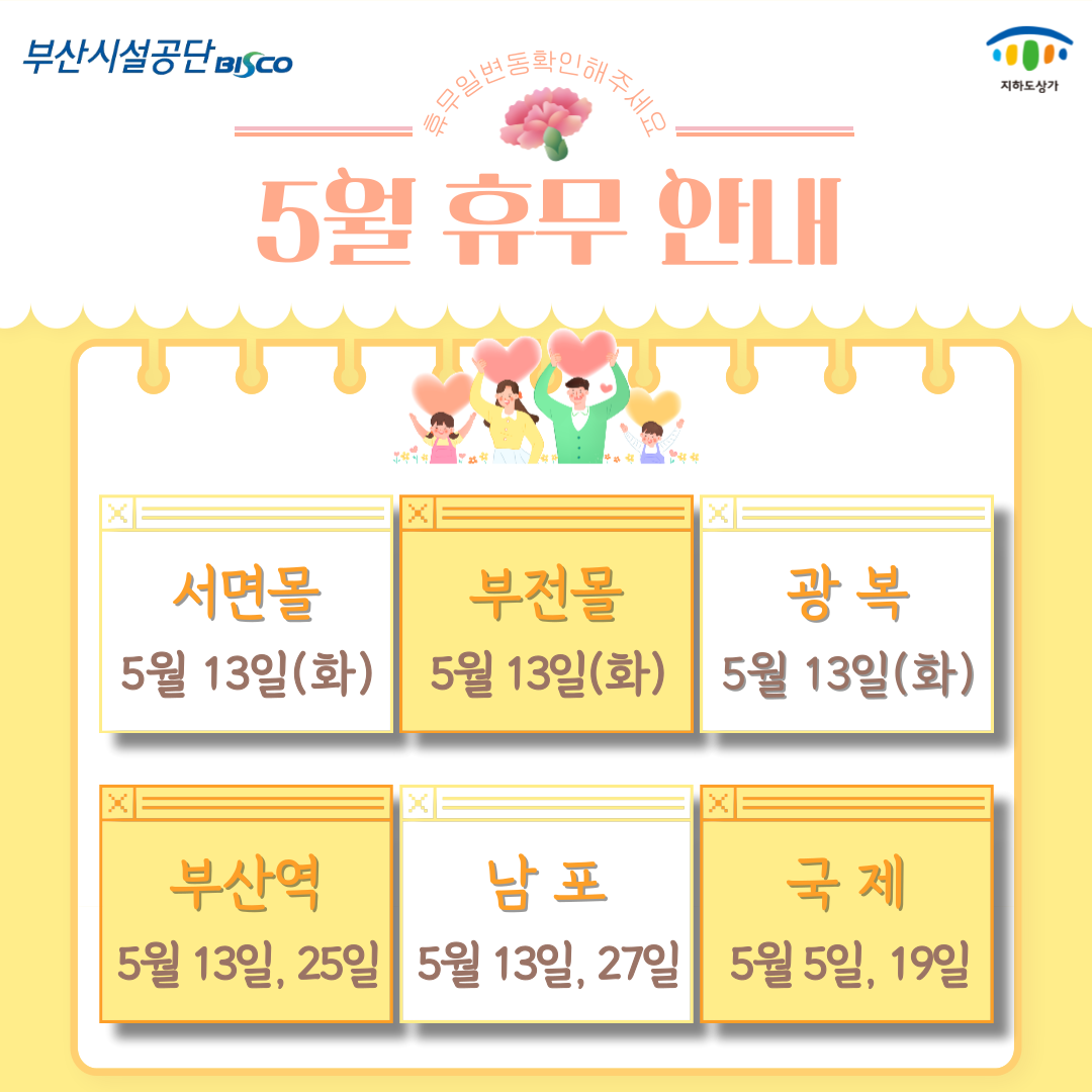 부산 지하도상가 5월 휴무일 안내